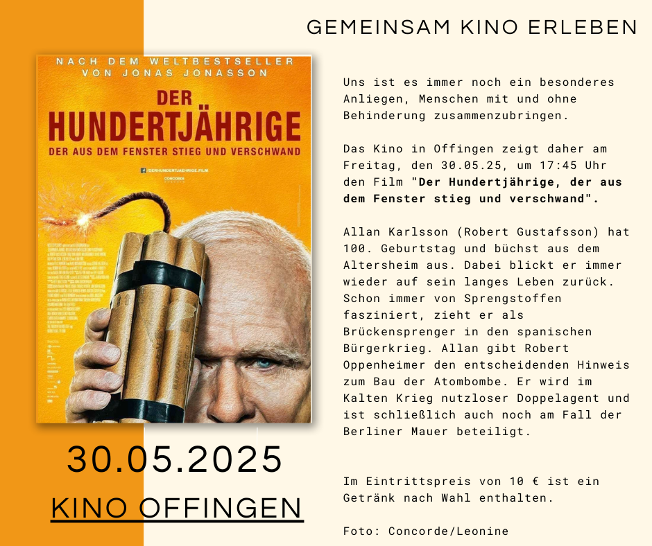 30.05.2025 - Kino Offingen "Der Hundertjährige, der aus dem Fenster stieg"